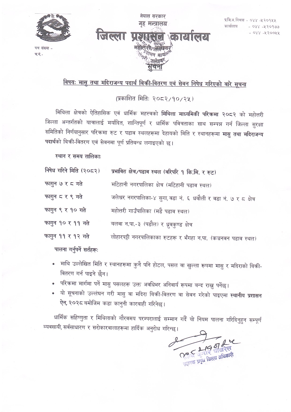 जिल्ला प्रशासन कार्यालय महोत्तरीद्वारा जारी सूचना।