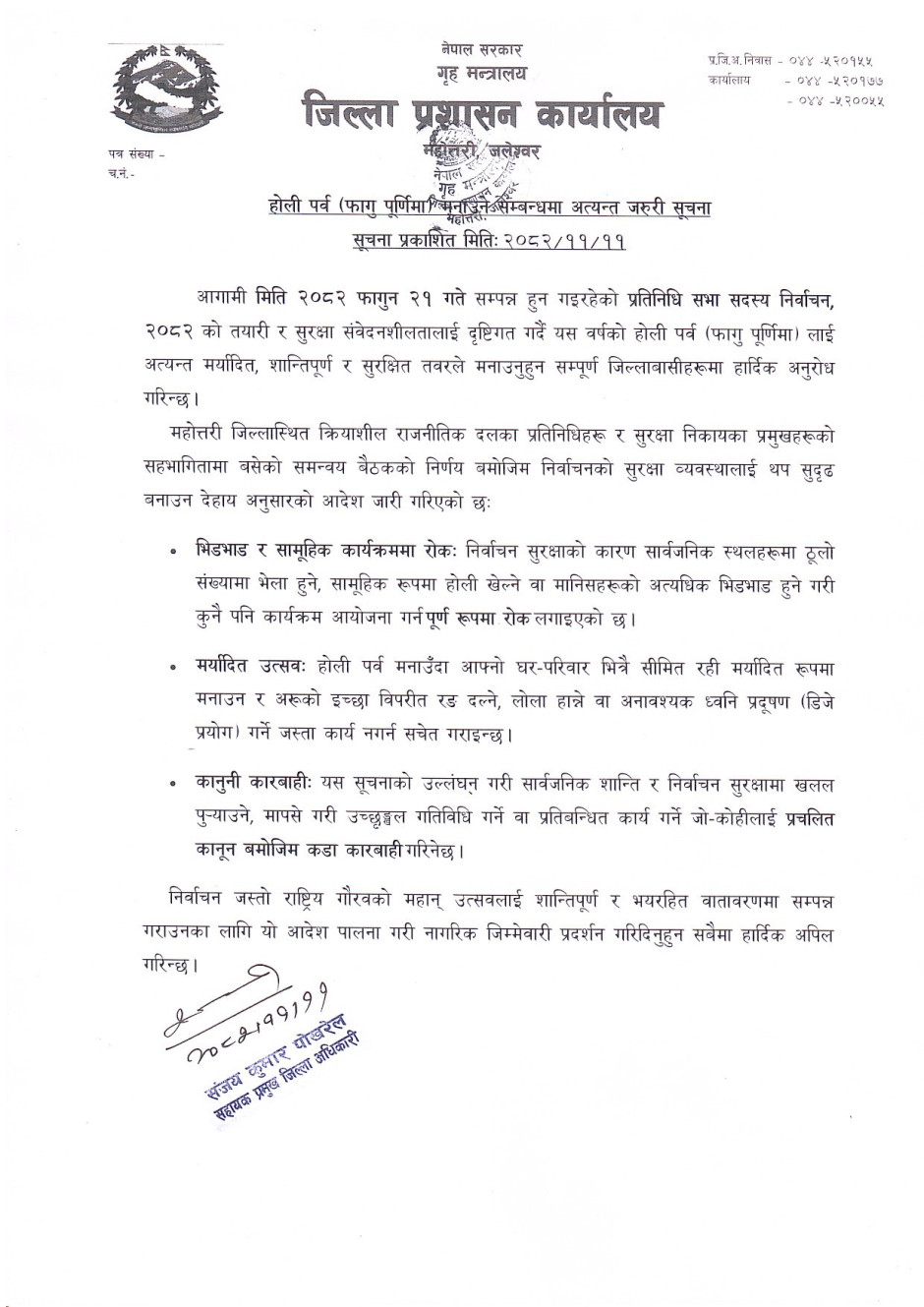 मर्यादित रुपमा होली पर्व मनाउने बारे सूचना