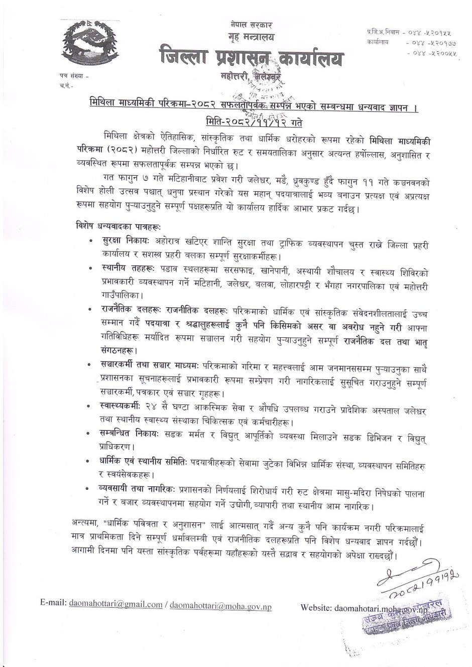 © सर्वाधिकार सुरक्षित जिल्ला प्रशासन कार्यालय, महोत्तरी .